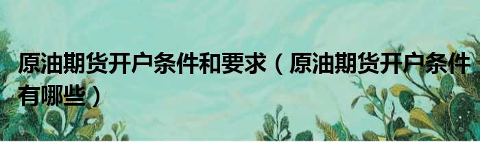 大家好,小皮来为大家解答以上问题。原油期货开户条件和要求,原油期货开户条件有哪些这个很多人还不清楚,现在一起跟着小编来瞧瞧吧!