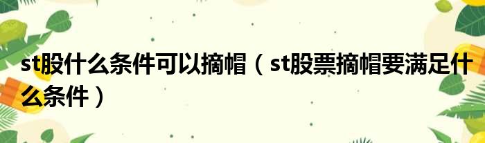 大家好,小皮来为大家解答以上问题。st股什么条件可以摘帽,st股票摘帽要满足什么条件这个很多人还不清楚,现在一起跟着小编来瞧瞧吧!