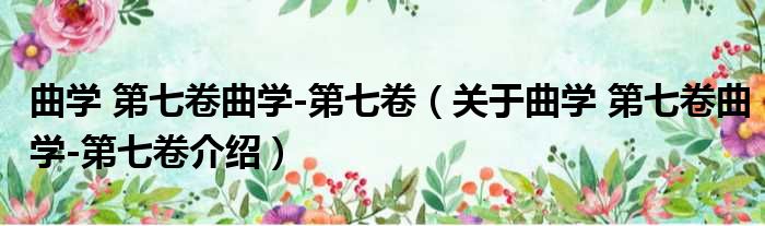 关于曲学 第七卷曲学-第七卷到此分享完毕,希望能帮助到您。