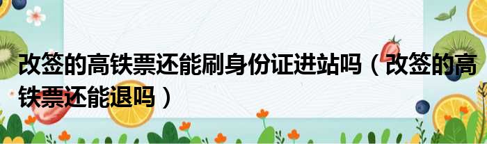 大家好,小皮来为大家解答以上问题。改签的高铁票还能刷身份证进站吗,改签的高铁票还能退吗这个很多人还不清楚,现在一起跟着小编来瞧瞧吧!