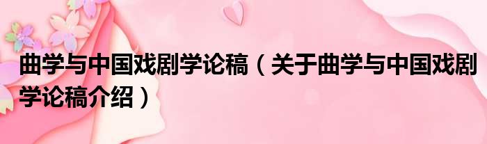 关于曲学与中国戏剧学论稿到此分享完毕,希望能帮助到您。
