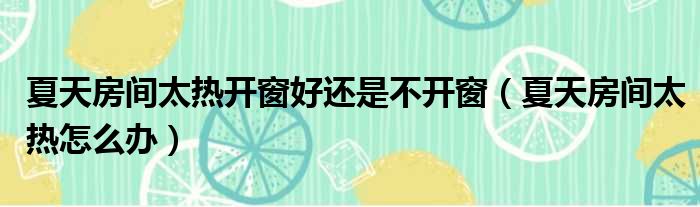 大家好,小皮来为大家解答以上问题。夏天房间太热开窗好还是不开窗,夏天房间太热怎么办这个很多人还不清楚,现在一起跟着小编来瞧瞧吧!