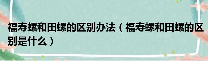 关于福寿螺和田螺的区别办法,福寿螺和田螺的区别是什么的介绍到此结束,希望对大家有所帮助。