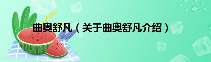 关于曲奥舒凡到此分享完毕,希望能帮助到您。