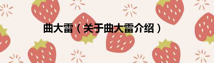 免责声明:本文由用户上传,如有侵权请联系删除!大家好,小钱来为大家解答以上的问题。曲大雷,关于曲大雷介绍这个很多人还不知道,现在让我们一起来看看吧!