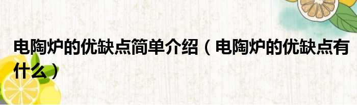 关于电陶炉的优缺点简单介绍,电陶炉的优缺点有什么的介绍到此结束,希望对大家有所帮助。