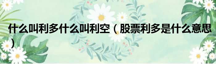大家好,小皮来为大家解答以上问题。什么叫利多什么叫利空,股票利多是什么意思这个很多人还不清楚,现在一起跟着小编来瞧瞧吧!