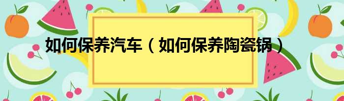 大家好,小皮来为大家解答以上问题。如何保养汽车,如何保养陶瓷锅这个很多人还不清楚,现在一起跟着小编来瞧瞧吧!