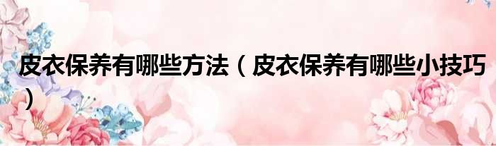 关于皮衣保养有哪些方法,皮衣保养有哪些小技巧的介绍到此结束,希望对大家有所帮助。