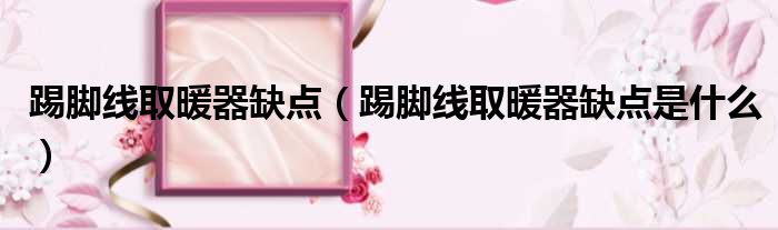 关于踢脚线取暖器缺点,踢脚线取暖器缺点是什么的介绍到此结束,希望对大家有所帮助。