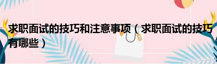 大家好,小皮来为大家解答以上问题。求职面试的技巧和注意事项,求职面试的技巧有哪些这个很多人还不清楚,现在一起跟着小编来瞧瞧吧!
