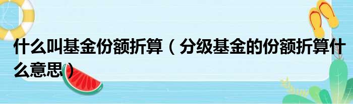 大家好,小皮来为大家解答以上问题。什么叫基金份额折算,分级基金的份额折算什么意思这个很多人还不清楚,现在一起跟着小编来瞧瞧吧!