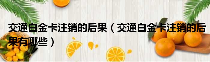 关于交通白金卡注销的后果,交通白金卡注销的后果有哪些的介绍到此结束,希望对大家有所帮助。
