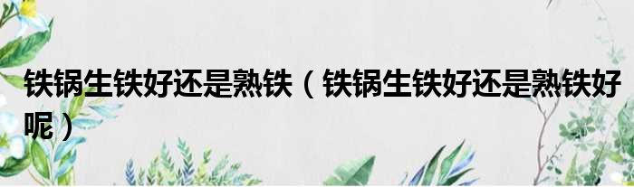 关于铁锅生铁好还是熟铁,铁锅生铁好还是熟铁好呢的介绍到此结束,希望对大家有所帮助。