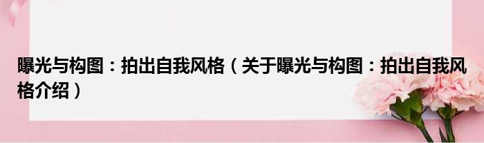 大家好,小钱来为大家解答以上的问题。曝光与构图:拍出自我风格,关于曝光与构图:拍出自我风格介绍这个很多人还不知道,现在让我们一起来看看吧!