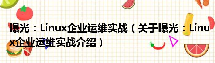 大家好,小钱来为大家解答以上的问题。曝光:Linux企业运维实战,关于曝光:Linux企业运维实战介绍这个很多人还不知道,现在让我们一起来看看吧!