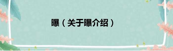 1、 曝拼音pù,bào,是一个汉语汉字,拼音bào或pù,是指使照相胶片或感光纸感光, 曝光,摄影感光材料的感光; 曝露,露在外头,无所隐蔽曝露于原野之中;曝晒,暴露在阳光下晒。