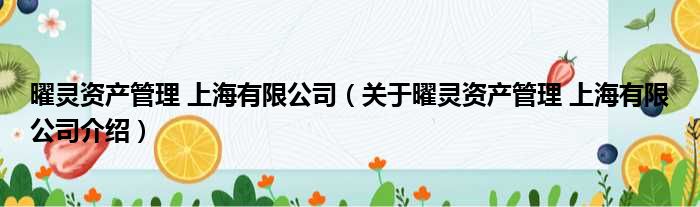 关于曜灵资产管理 上海有限公司到此分享完毕,希望能帮助到您。