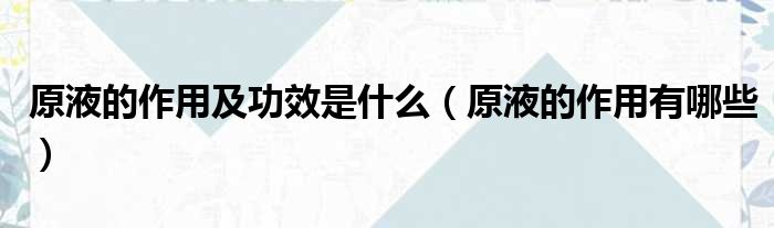 关于原液的作用及功效是什么,原液的作用有哪些的介绍到此结束,希望对大家有所帮助。