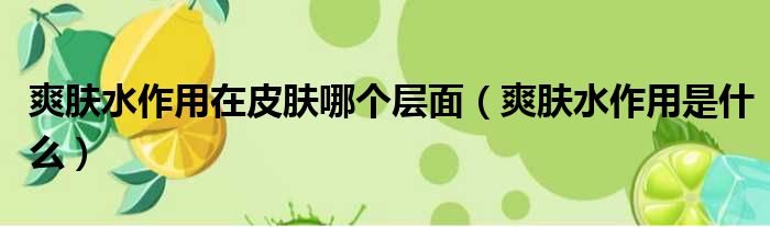 大家好,小皮来为大家解答以上问题。爽肤水作用在皮肤哪个层面,爽肤水作用是什么这个很多人还不清楚,现在一起跟着小编来瞧瞧吧!