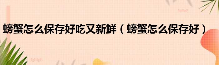 大家好,小皮来为大家解答以上问题。螃蟹怎么保存好吃又新鲜,螃蟹怎么保存好这个很多人还不清楚,现在一起跟着小编来瞧瞧吧!