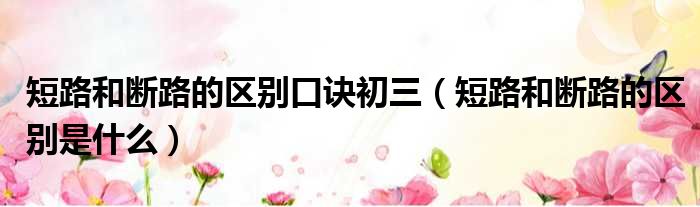 关于短路和断路的区别口诀初三,短路和断路的区别是什么的介绍到此结束,希望对大家有所帮助。