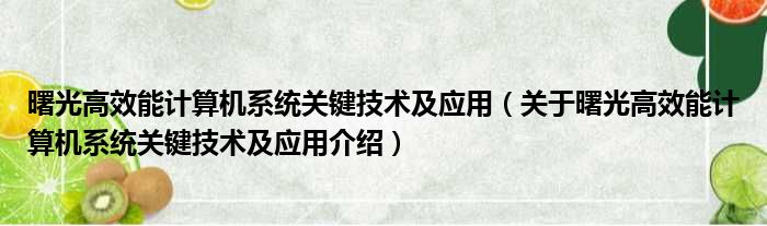 免责声明:本文由用户上传,如有侵权请联系删除!大家好,小钱来为大家解答以上的问题。曙光高效能计算机系统关键技术及应用,关于曙光高效能计算机系统关键技术及应用介绍这个很多人还不知道,现在让我们一起来看看吧!