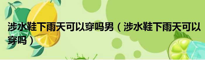 关于涉水鞋下雨天可以穿吗男,涉水鞋下雨天可以穿吗的介绍到此结束,希望对大家有所帮助。