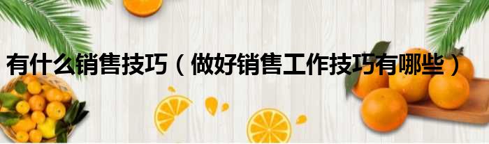 大家好,小皮来为大家解答以上问题。有什么销售技巧,做好销售工作技巧有哪些这个很多人还不清楚,现在一起跟着小编来瞧瞧吧!
