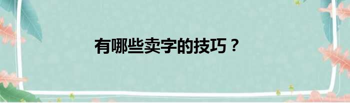 大家好,小皮来为大家解答以上问题。有哪些卖字的技巧?这个很多人还不清楚,现在一起跟着小编来瞧瞧吧!