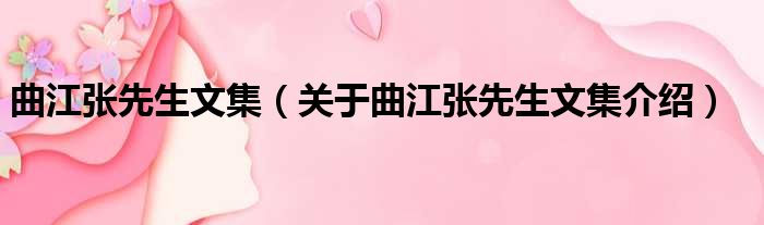 免责声明:本文由用户上传,如有侵权请联系删除!大家好,小钱来为大家解答以上的问题。曲江张先生文集,关于曲江张先生文集介绍这个很多人还不知道,现在让我们一起来看看吧!