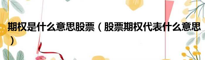 大家好,小皮来为大家解答以上问题。期权是什么意思股票,股票期权代表什么意思这个很多人还不清楚,现在一起跟着小编来瞧瞧吧!