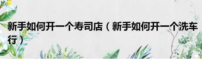 大家好,小皮来为大家解答以上问题。新手如何开一个寿司店,新手如何开一个洗车行这个很多人还不清楚,现在一起跟着小编来瞧瞧吧!