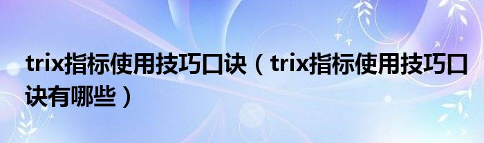 大家好,小皮来为大家解答以上问题。trix指标使用技巧口诀,trix指标使用技巧口诀有哪些这个很多人还不清楚,现在一起跟着小编来瞧瞧吧!
