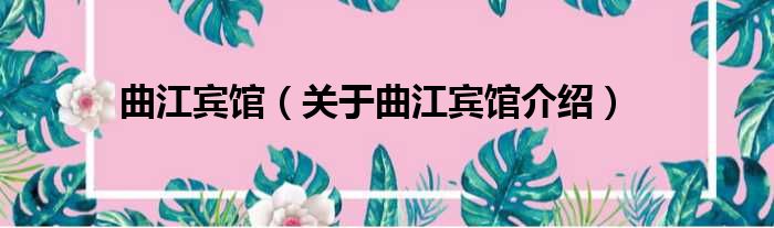 关于曲江宾馆到此分享完毕,希望能帮助到您。