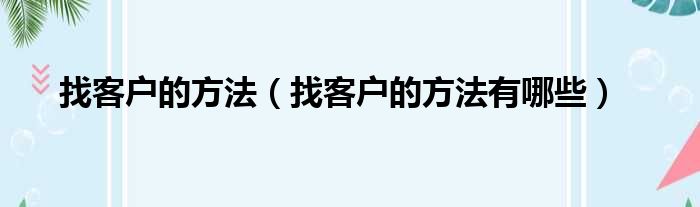 大家好,小皮来为大家解答以上问题。找客户的方法,找客户的方法有哪些这个很多人还不清楚,现在一起跟着小编来瞧瞧吧!