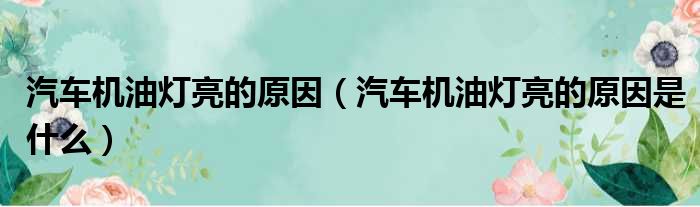 关于汽车机油灯亮的原因,汽车机油灯亮的原因是什么的介绍到此结束,希望对大家有所帮助。