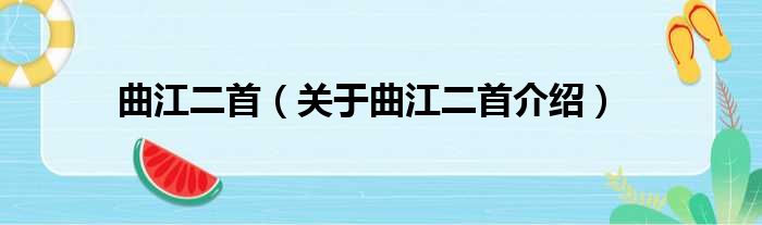 1、 《曲江二首》是唐代诗人杜甫的诗作,写于乾元元年(758年)暮春。