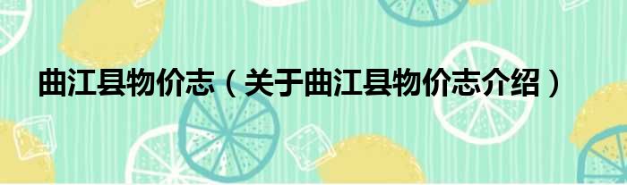 免责声明:本文由用户上传,如有侵权请联系删除!大家好,小钱来为大家解答以上的问题。曲江县物价志,关于曲江县物价志介绍这个很多人还不知道,现在让我们一起来看看吧!