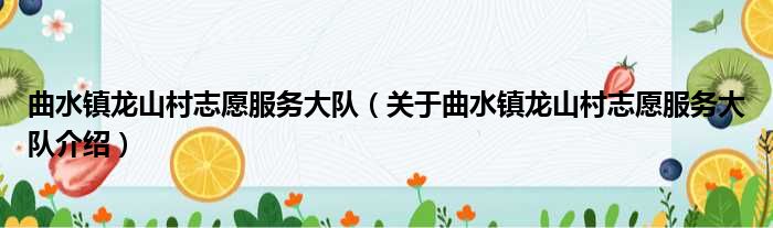 关于曲水镇龙山村志愿服务大队到此分享完毕,希望能帮助到您。