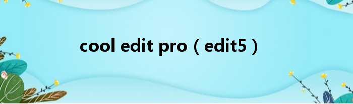 大家好,小豆豆来为大家解答以上的问题。cool edit pro,edit5这个很多人还不知道,现在让我们一起来看看吧!