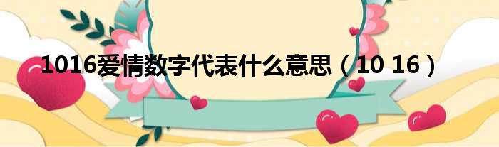 免责声明:本文由用户上传,如有侵权请联系删除!大家好,小豆豆来为大家解答以上的问题。1016爱情数字代表什么意思,10 16这个很多人还不知道,现在让我们一起来看看吧!