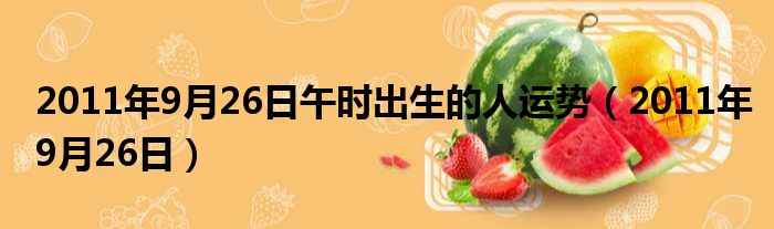 大家好,小豆豆来为大家解答以上的问题。2011年9月26日午时出生的人运势,2011年9月26日这个很多人还不知道,现在让我们一起来看看吧!