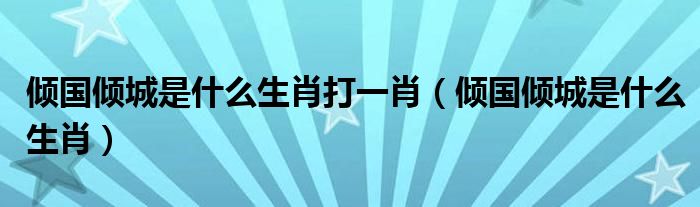 大家好,小豆豆来为大家解答以上的问题。倾国倾城是什么生肖打一肖,倾国倾城是什么生肖这个很多人还不知道,现在让我们一起来看看吧!