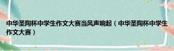 大家好,小豆豆来为大家解答以上的问题。中华圣陶杯中学生作文大赛当风声响起,中华圣陶杯中学生作文大赛这个很多人还不知道,现在让我们一起来看看吧!