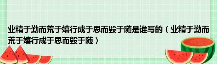 大家好,今天小六子来为大家解答以下的问题,关于业精于勤而荒于嬉行成于思而毁于随是谁写的,业精于勤而荒于嬉行成于思而毁于随这个很多人还不知道,现在让我们一起来看看吧!