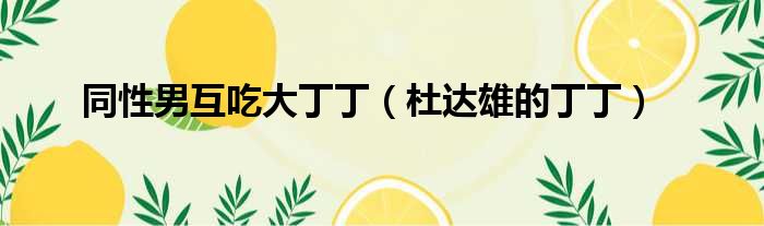 大家好,今天小六子来为大家解答以下的问题,关于同性男互吃大丁丁,杜达雄的丁丁这个很多人还不知道,现在让我们一起来看看吧!