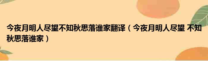 大家好,今天小六子来为大家解答以下的问题,关于今夜月明人尽望不知秋思落谁家翻译,今夜月明人尽望 不知秋思落谁家这个很多人还不知道,现在让我们一起来看看吧!