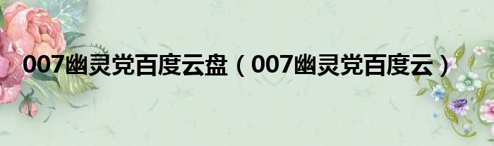 大家好,今天小六子来为大家解答以下的问题,关于007幽灵党百度云盘,007幽灵党百度云这个很多人还不知道,现在让我们一起来看看吧!
