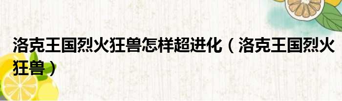 大家好,今天小六子来为大家解答以下的问题,关于洛克王国烈火狂兽怎样超进化,洛克王国烈火狂兽这个很多人还不知道,现在让我们一起来看看吧!